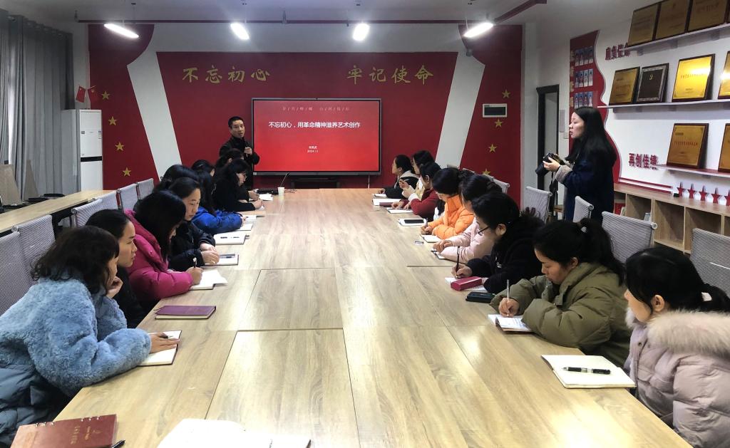 12月6日,学校党委委员、副校长刘英武专程来到湘绣艺术学院,为师生们讲授了一堂题为《不忘初心,用革命精神滋养艺术创作》的专题党课。学院党总支副书记蔡胜男主持会议,全体教职工和学生党员参加党课学习。