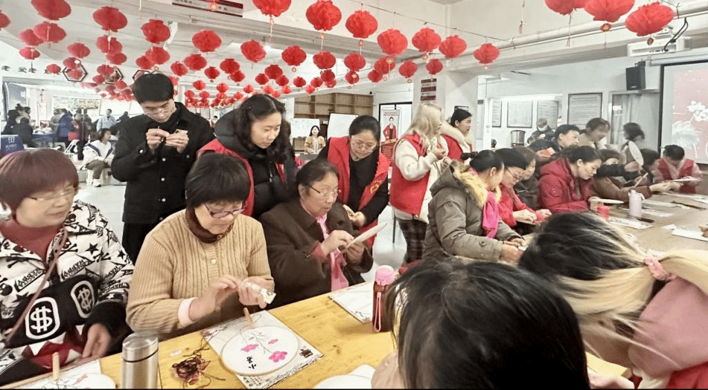 为深入践行雷锋精神,支部依托湘绣技艺特色,组织党员赴长沙县湘龙街道社区开展志愿服务。活动中,党员们化身非遗文化传播使者,带领社区居民在穿针引线间沉浸式体验湘绣“以针代笔、以线润色”的艺术魅力。