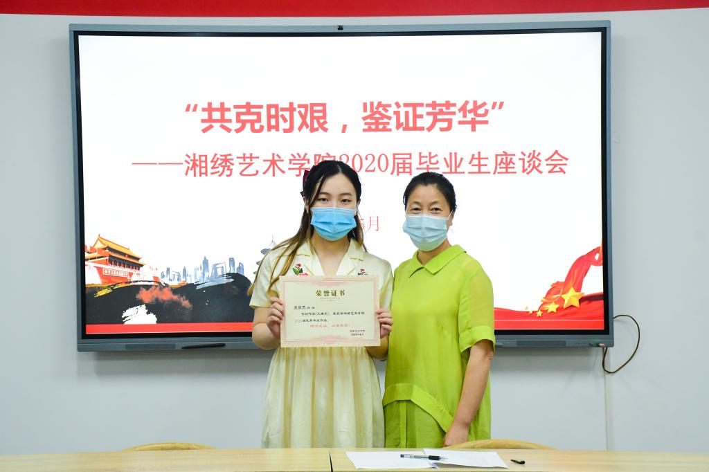越过漫长的疫情,经过精心的筹备,湘绣艺术学院终于迎来了2020届毕业生的返校。为共叙师生情谊,倾听毕业生的心声,2020年6月7日,湘绣艺术学院召开了一场线上+线下特殊的毕业生座谈会。