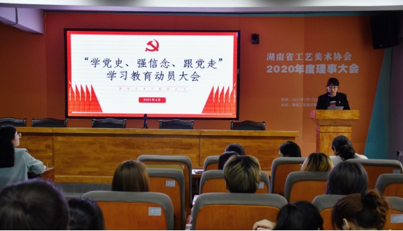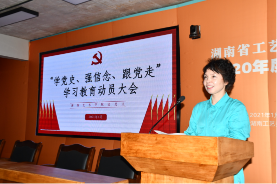 4月20日,湘绣艺术学院团总支在长沙基地综合楼三楼报告厅组织召开“学党史、强信念、跟党走”学习教育动员大会。