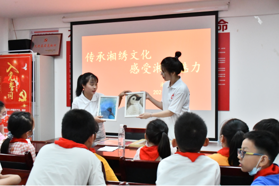 为进一步弘扬中华优秀传统文化,推进非物质文化遗产湘绣的传承发展,湘绣艺术学院团总支于7月20日赴长沙县湘绣社区开展以“传承湘绣文化感受湘绣魅力”为主题的暑期社会实践活动。湘绣社区书记梁学林、湘绣艺术学院党总支副书记蔡胜男、团总支书记杨荣、团学干部代表、湘绣社区30余名小朋友参与了本次活动。
