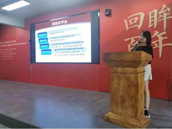 随后,朱婷依次介绍学校奖学金、勤工助学等多项资助政策,最后,她特别强调,各类奖助学金申请中的信息必须保证真实可靠,希望同学们可以按照要求,做到诚实守信,如实填报申请资料。