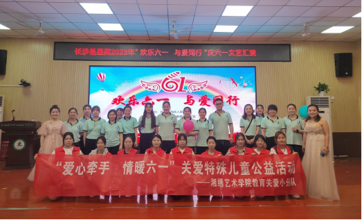 2023年6月1日,湘绣艺术学院教育关爱小分队来到长沙县中南小学,为长沙县星苑儿童康复中心儿童开展“爱心牵手情暖六一”志愿服务活动。
