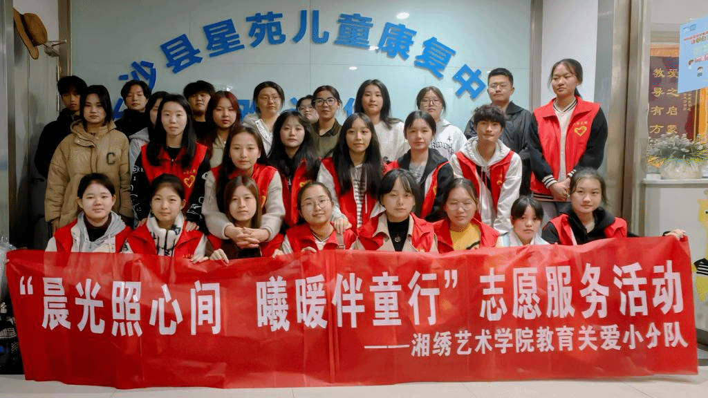11月11日,湘绣艺术学院教育关爱小分队前往长沙县星苑儿童康复中心,开展“晨光照心间,曦暖伴童行”的关爱特殊儿童教育活动,为康复中心的小朋友们送去爱心,传递温情。