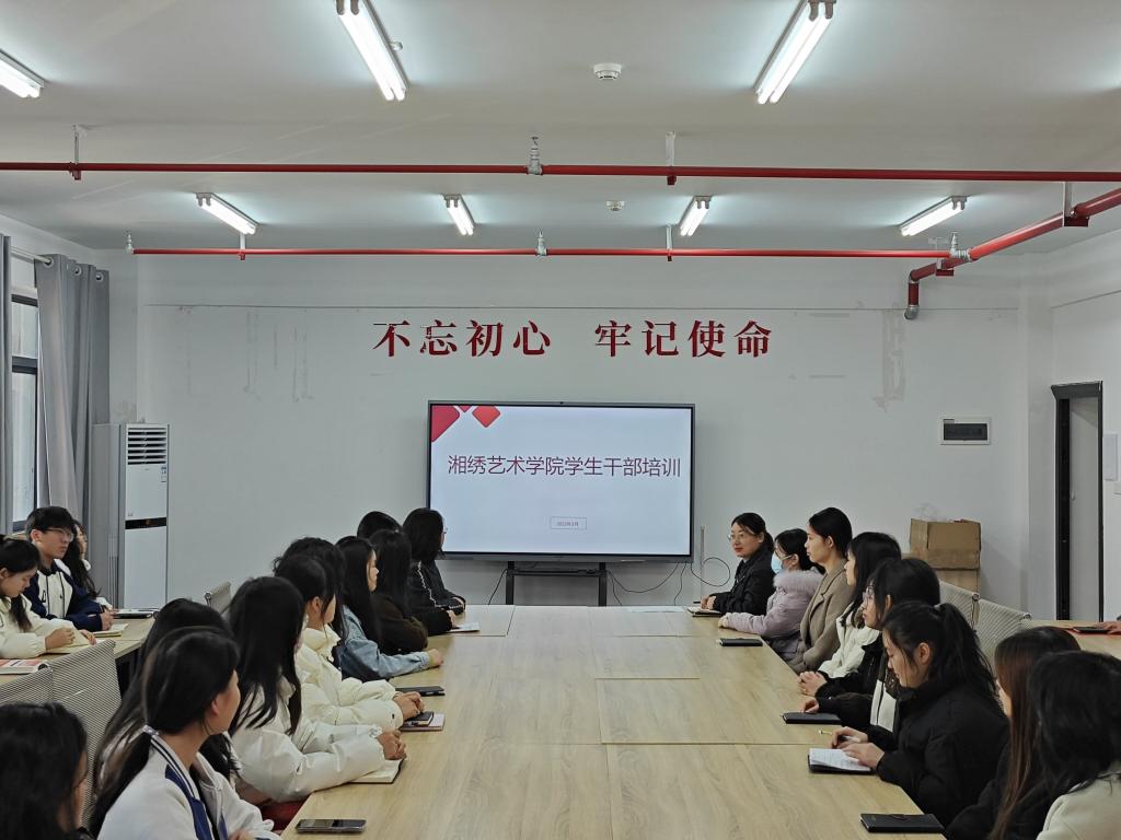 为了进一步加强我院学生干部队伍建设,培养提升学生干部工作能力,我院于3月23日举办了湘绣艺术学院学生干部培训。本次培训由学院团总支书记杨荣担任主讲,党总支副书记蔡胜男和全体学生干部参加。