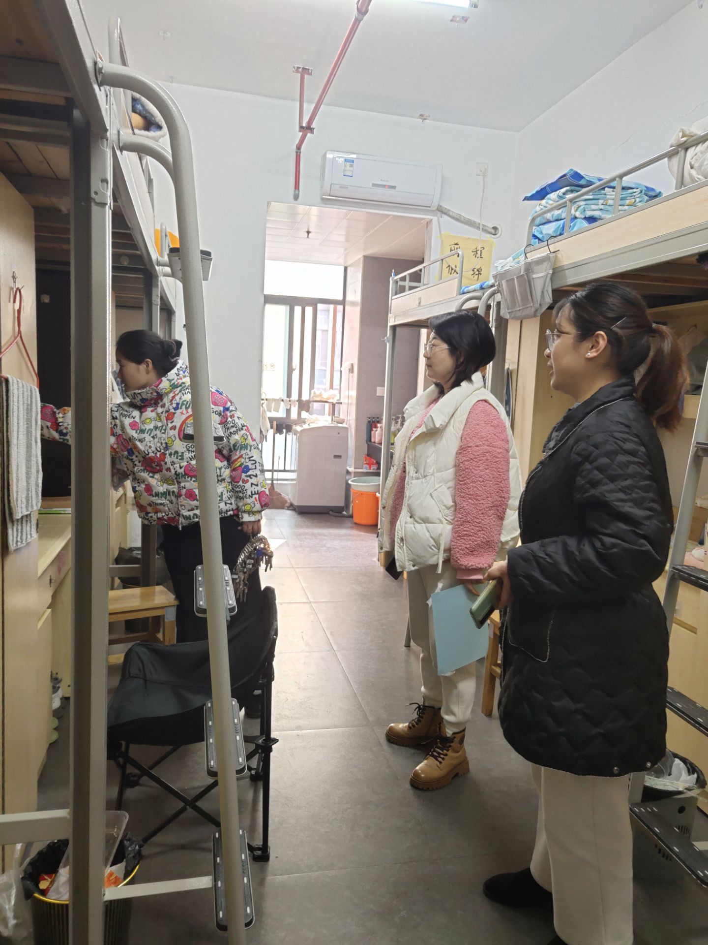 12月4日,湘绣艺术学院党总支副书记蔡胜男带领各年级辅导员、团学会综合事务部学生干部深入学生寝室,检查平安寝室建设情况,从寝室安全、寝室卫生和寝室文明三个维度对学生寝室进行评分,并针对检查中发现的安全隐患等问题,要求立即整改到位。经过评选,女寝304室、男寝504室等16间宿舍获评为“星级平安寝室”,湘绣2102等3个班级获评“平安班级”荣誉称号。