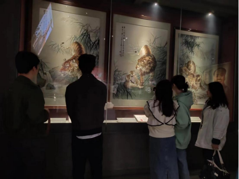 活动期间,学生们参观了湘绣博物馆的各个主题展厅,深入学习了湘绣的起源与发展及工艺流程。展馆中一幅幅美轮美奂、工艺精湛的湘绣作品令学生们赞叹不已,尤其是看到采用鬅毛针绣制的狮虎豹作品和双面异绣作品时,都被其高超的湘绣技艺所震撼,也被先辈们精益求精、敢于拓新的匠心精神所感动。学生们纷纷表示自己一定要努力学好湘绣技艺,也要绣出这样精美的作品,将湘绣技艺更好地传承下去。