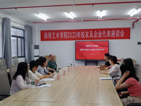 为切实做好2023届毕业生就业服务工作,加强校企交流与合作,6月17日下午,湘绣艺术学院邀请伊飞湘绣、齐绘湘绣、创姿服饰等企业代表在思美楼301会议室召开校企座谈会,党总支副书记蔡胜男、团总支书记杨荣、招生就业专干及2023届毕业班辅导员参加。