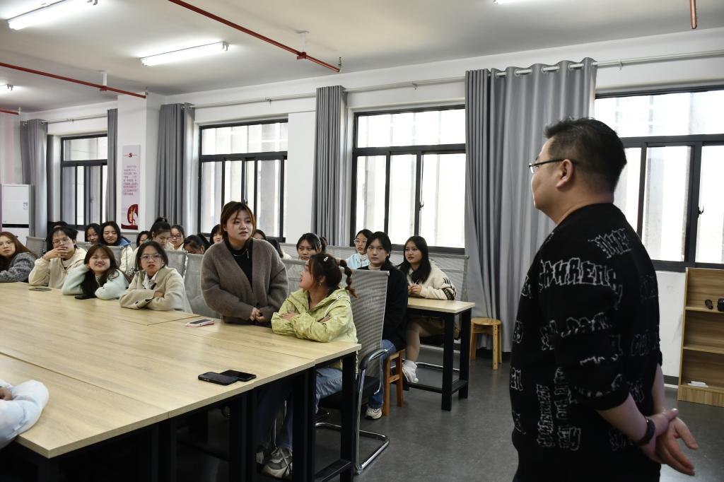 爱绣计算机公司是一个以机绣为主,涉及时装,旗袍,戏服,汉服,背景墙,装饰工艺画等领域的企业。宣讲会中,爱绣计算机公司负责人围绕“公司介绍”、“薪酬福利待遇”、“大学生培养计划”等进行了介绍。在互动环节,石碧峰就同学们关心的岗位描述、晋升通道等问题做了详细的解答。