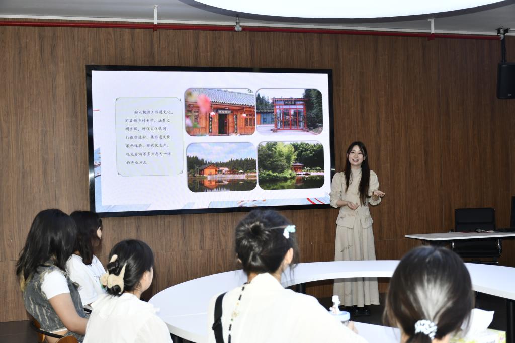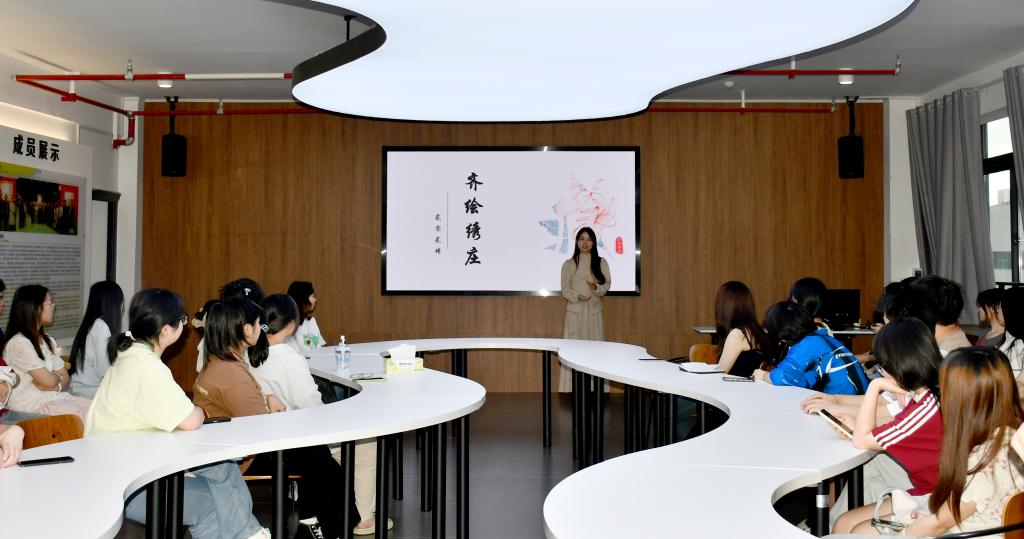 肖瑶向毕业生们介绍了齐绘绣庄的企业文化、业务模式与工作环境等,并就同学们关心的专业匹配度、人才需求等议题展开了互动交流。