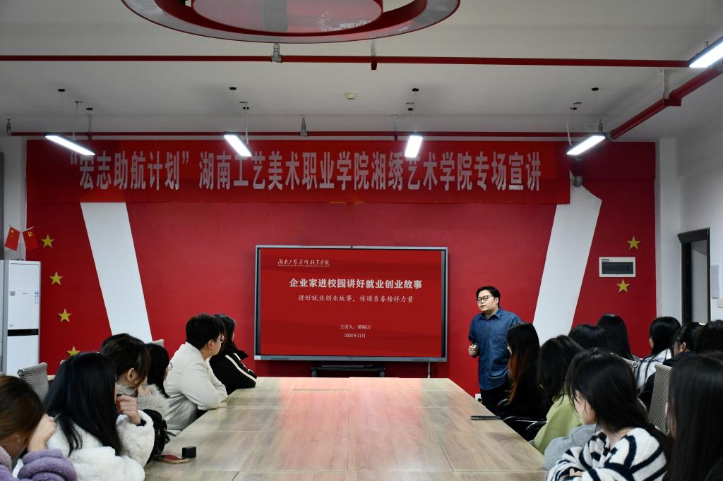 11月29日,湘绣艺术学院邀请2013届优秀校友蒋桐万回校,与毕业生们分享他在创业道路上的宝贵经验与深刻感悟。