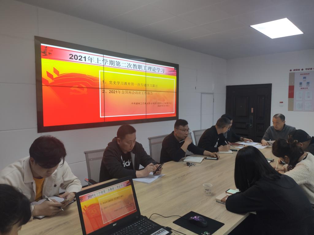 2021年3月30日上午,信息中心党支部根据学校党委的安排,在逸美楼312组织开展2021年上学期第二次教职工理论学习。会议由党支部书记刘树飞主持,信息中心全体同志参加。