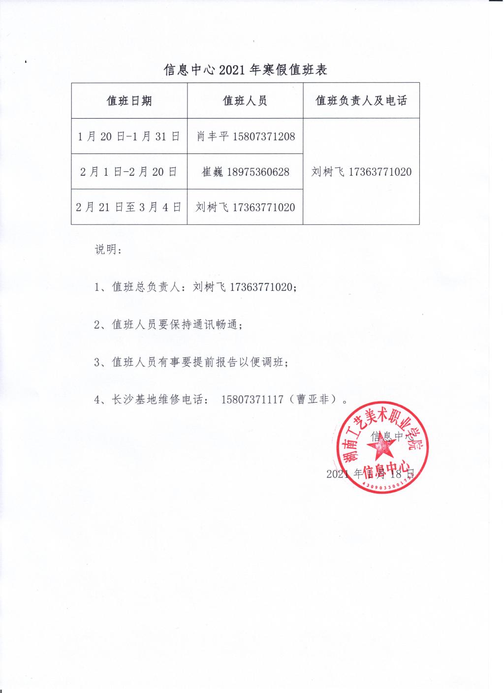 信息中心2021年寒假值班表