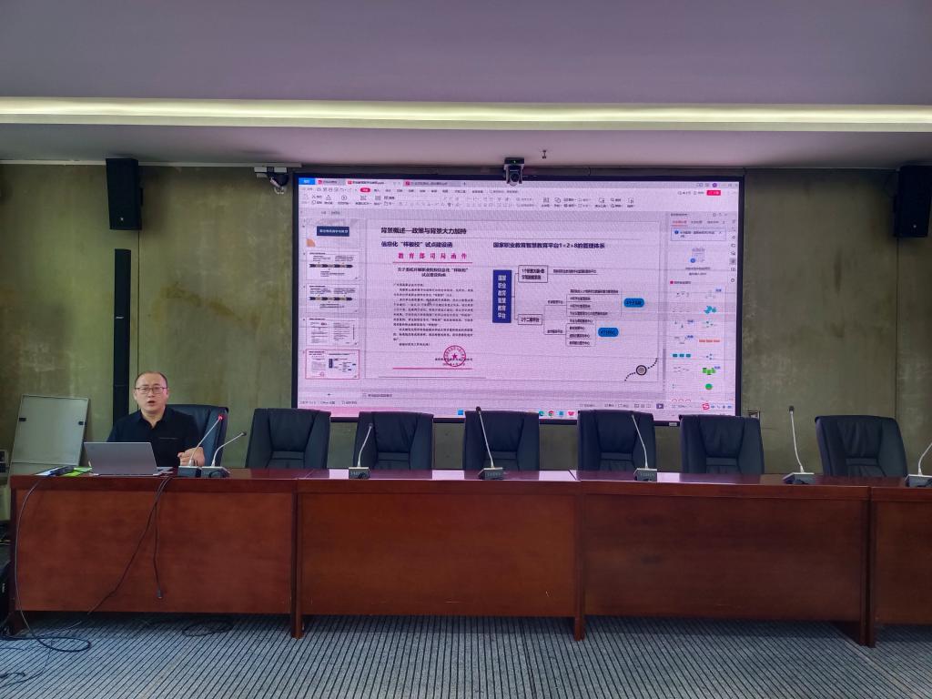 首先,刘树飞根据教育部《关于进一步推进职业教育数字校园建设的通知》要求,介绍了我校数字校园试点校建设情况以及现阶段的数据上报任务,7月底至少要完成工作任务的80%,9月底要完成上报任务的100%。随后,江西科骏、河南风速和联奕科技分别介绍了各自的上报系统以及如何帮助学校做好数据上报工作,并分享了在参与各院校数据上报中积累的经验。参会的各部门负责人与老师,对存在的问题与各建设厂商进行了交流探讨。