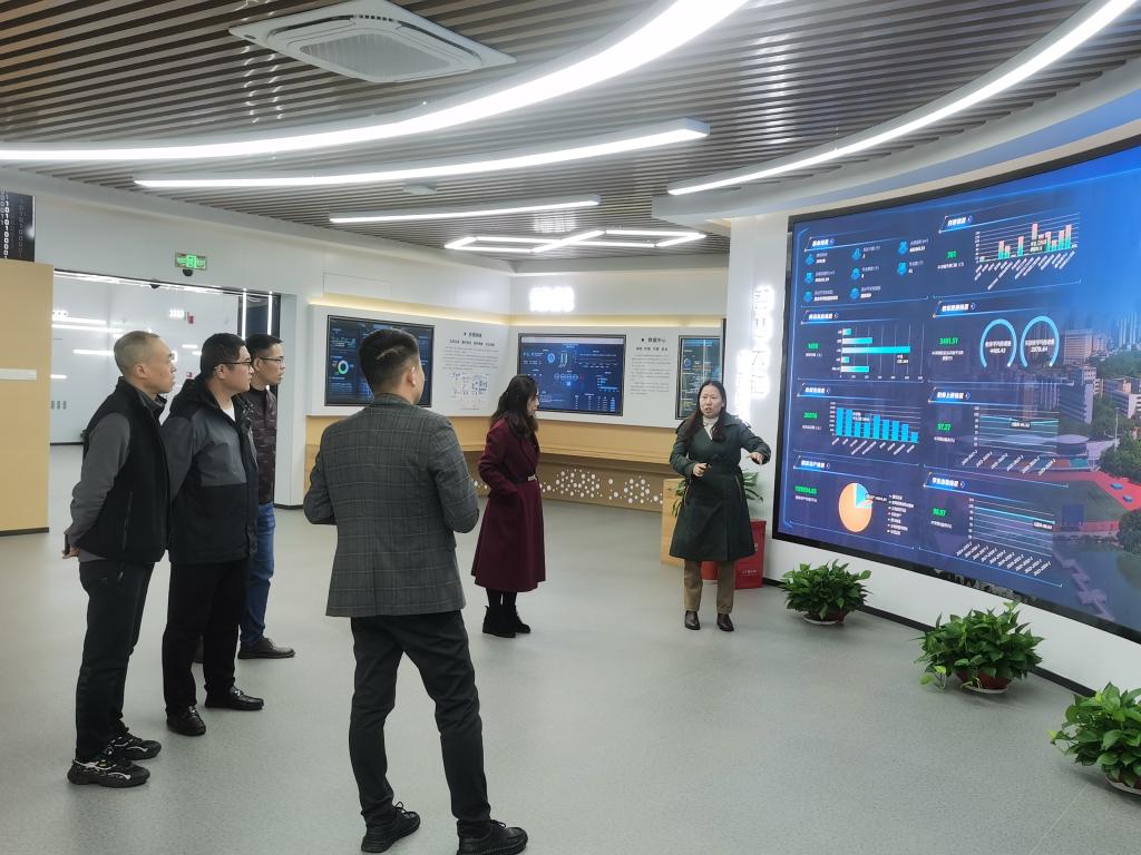 首先一行人来到长沙民政职业技术学院智慧校园体验中心,信息处主任雷军环介绍了学校智慧校园建设基础和实施过程,教务处处长徐立娟就如何做好教学巡课及线上考试等方面提出建议,信息科科长李成重点对学校数字资源、智慧教学、智慧科研、智慧管理等四个方面做了详细说明。随后主客双方就如何利用信息化做好职业教育高质量发展展开了深入的交流和探讨。