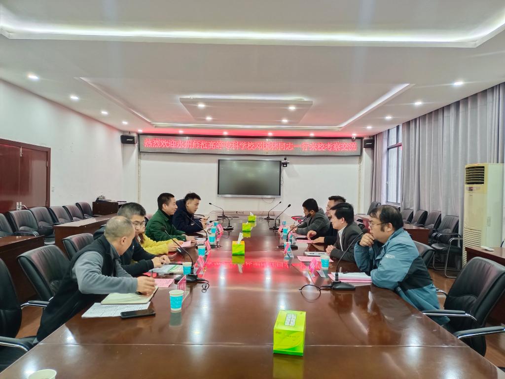 会上,刘英武代表学校对邓国林一行来校交流表示热烈欢迎,并向大家介绍了我校的办学特色与成果。着重介绍了我校的内涵建设、信息化教学、项目与成果、特色专业群等情况。邓国林表示,此行收益良多,学校内涵建设、专业建设、信息化建设等方面的做法特别值得学习,希望以后能相互借鉴优秀经验做法,加强多层次、多方面深入合作交流。