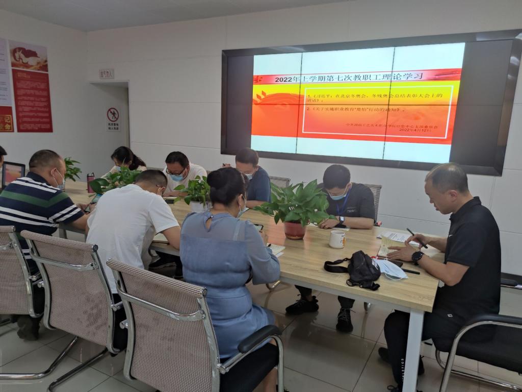 4月12日下午,信息中心党支部在逸美楼312室开展了2022年上学期第七次政治理论学习,学习了《习近平:在北京冬奥会、冬残奥会总结表彰大会上的讲话》《关于实施职业教育“楚怡”行动的通知》。会议由信息中心党支部书记刘树飞主持,信息中心全体人员参加。