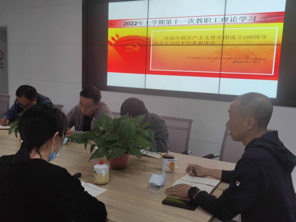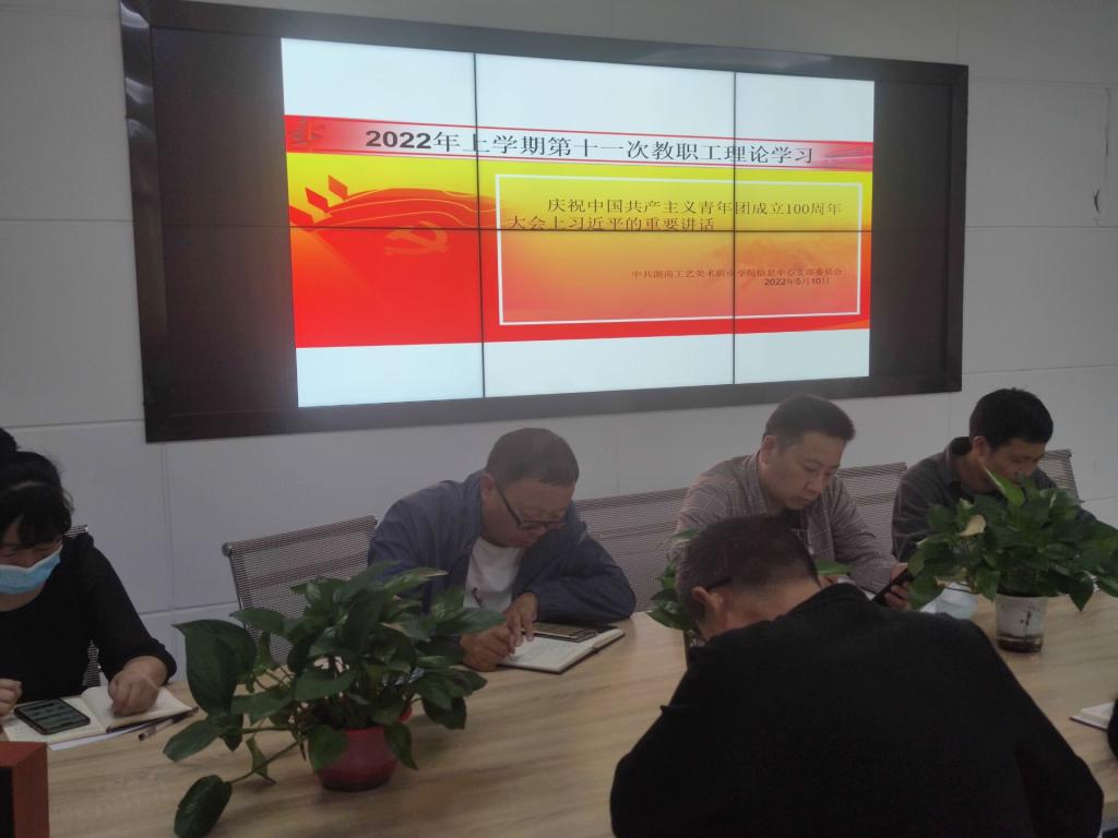 5月10日下午,信息中心党支部组织了2022年上学期第十一次政治理论学习,学习了庆祝中国共产主义青年团成立100周年大会上习近平的重要讲话,会议由信息中心党支部书记刘树飞主持,信息中心全体人员参加。