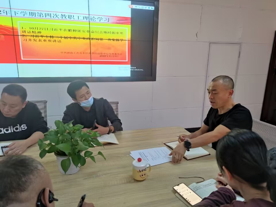 11月1日下午,信息中心党支部在逸美楼312室开展了本学期第四次政治理论学习。会议由党支部书记刘树飞主持,信息中心全体同志参加。