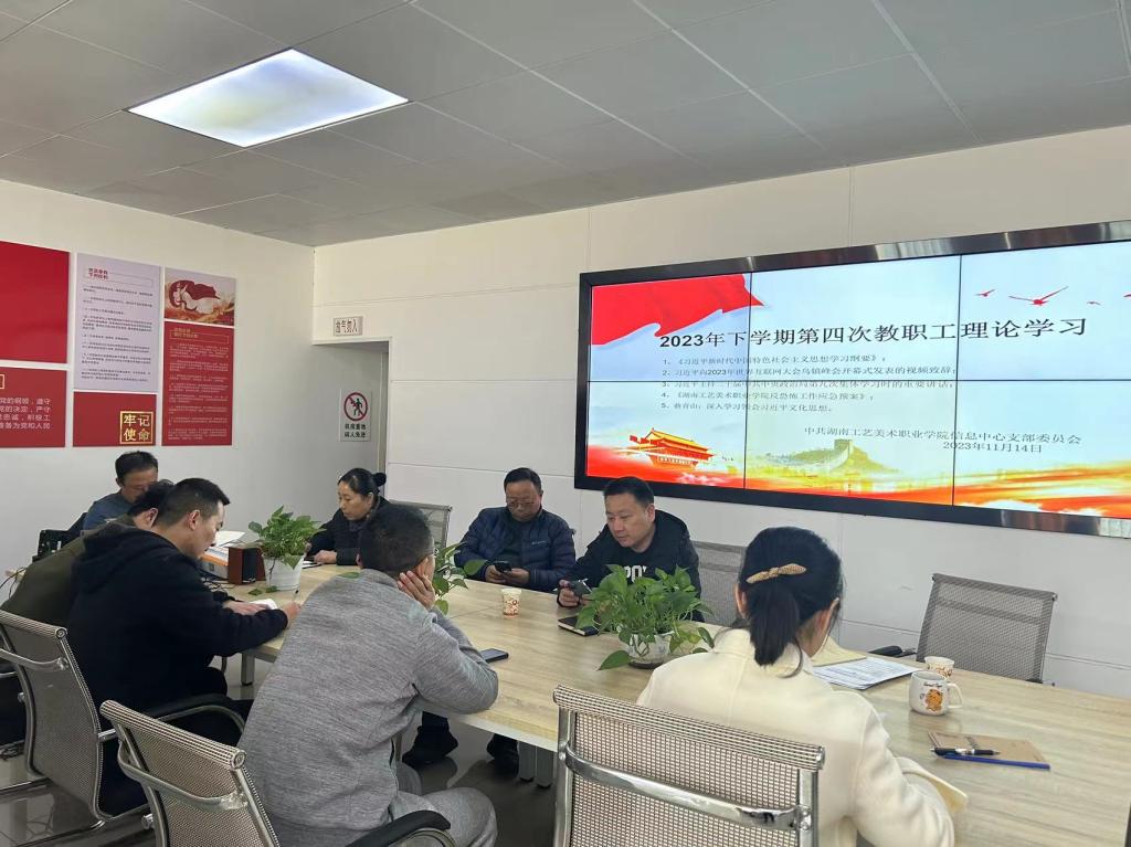 11月14日下午,信息中心党支部在逸美楼312室开展了2023年下学期第四次政治理论学习。会议由党支部书记刘树飞主持,信息中心在校同志参加。