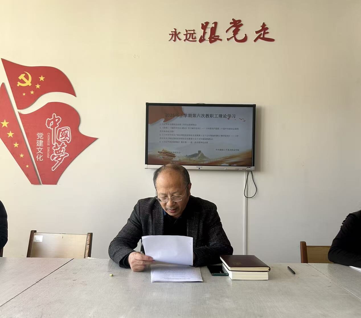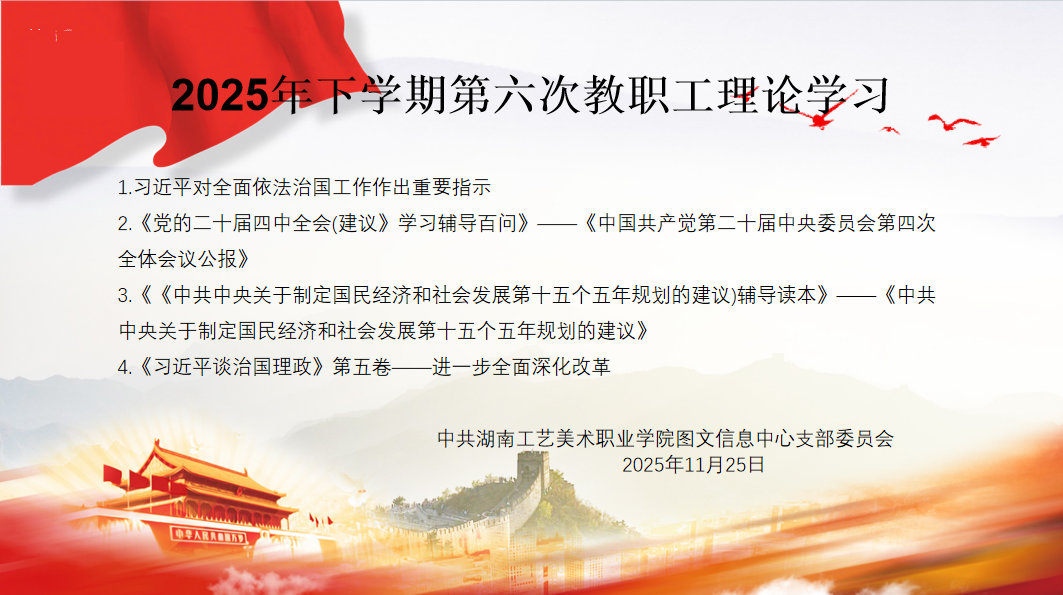 11月25日下午,党支部在图书馆4楼会议室开展了2025年下学期第六次教职工理论学习,会议由党支部书记陈立新主持,中心全体人员参加。