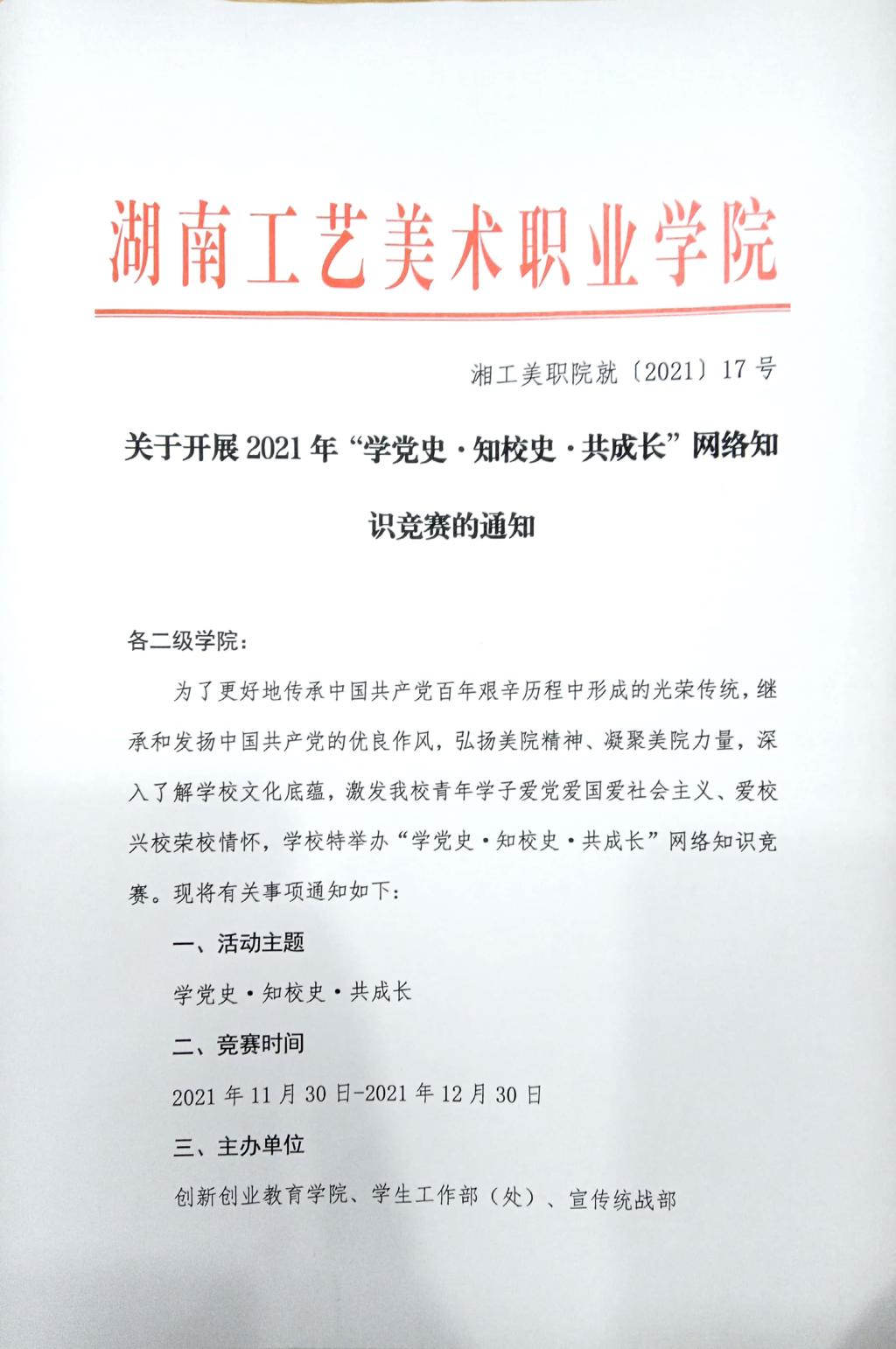 关于开展2021年“学党史·知校史·共成长”网络知识竞赛的通知