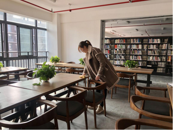 活动在长沙基地图书室举行,各位党员同志在图书室管理员李榕的指导下,分类整理各类书籍,并将整理好的书籍整齐摆放至书架。在完成图书上架摆放后,各位党员同志将桌椅摆放整齐,擦净桌椅板凳,打扫清洁地板,让图书室变得更加干净、整洁,为学校师生创造了良好的学习氛围。
