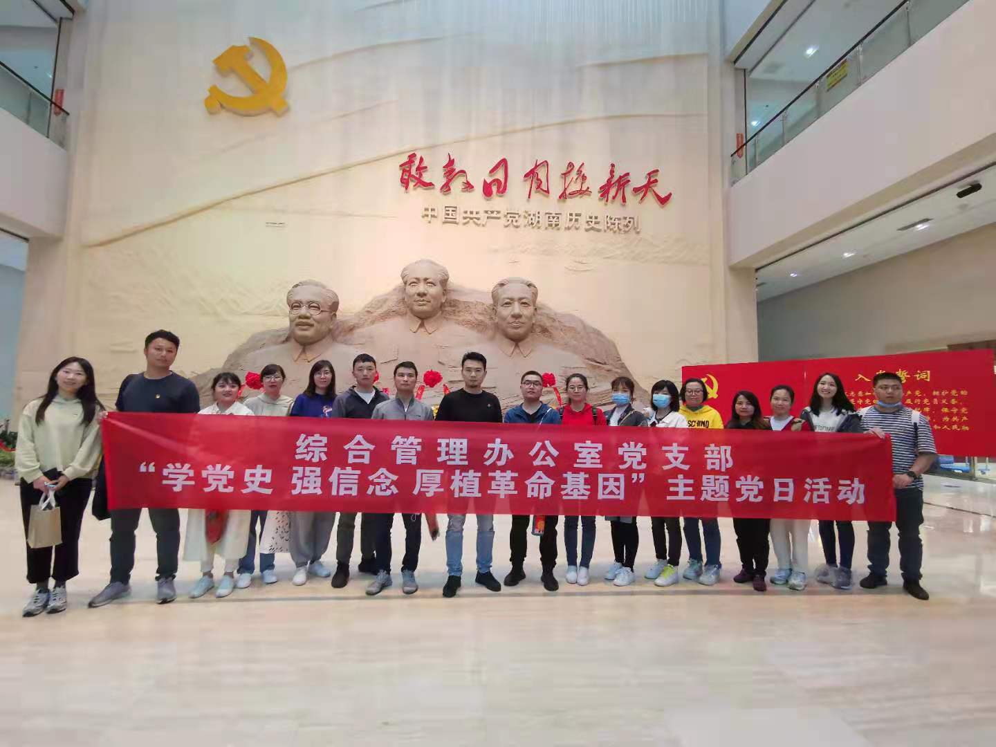 为认真贯彻党中央、省委、学校党委关于学习党史的重要决定,将党史学习教育落到实处,让党员不断汲取精神力量,进一步坚定理想信念,4月24日,综合管理办公室党支部赴中共湘区委员会旧址暨毛泽东杨开慧故居、长沙市党史陈列馆、湖南党史陈列馆以及雷锋纪念馆开展“学党史 强信念 厚植革命基因”主题党日活动。