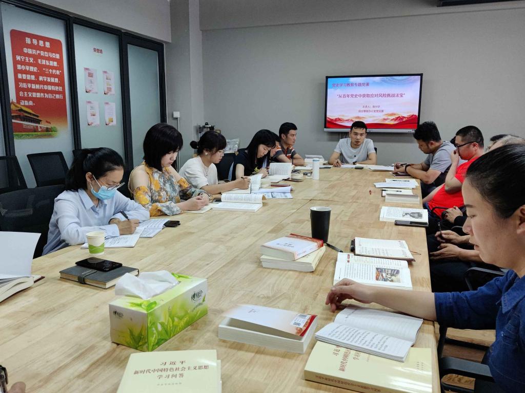 6月1日下午,综合管理办公室党支部书记以“从百年党史中获取应对风险挑战法宝”为题,给全体支部党员上了一堂生动的党史学习教育专题党课。
