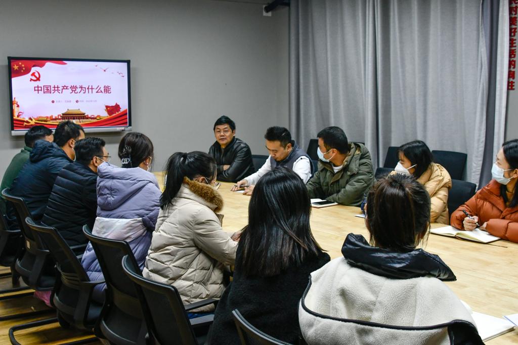 12月7日下午,在支部党员活动室,学校党委副书记汪泳波以《中国共产党为什么“能”》为题,为综合管理办公室党支部上专题党课,支部书记张兴华主持。