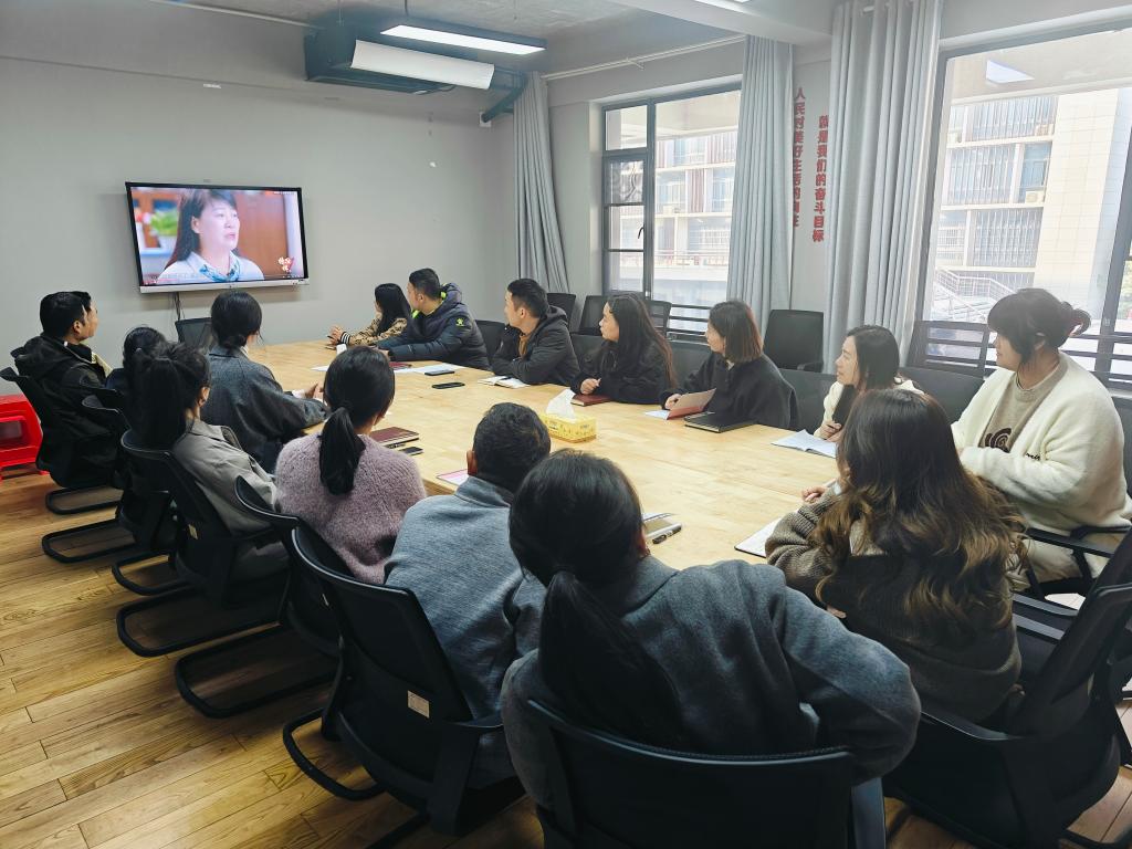 理论学习结束后,开展师德师风专题学习,科教园服务与实训中心党支部集中观看学习《榜样8》中湖南省衡阳市特殊教育学校教师刘玲俐的先进事迹。