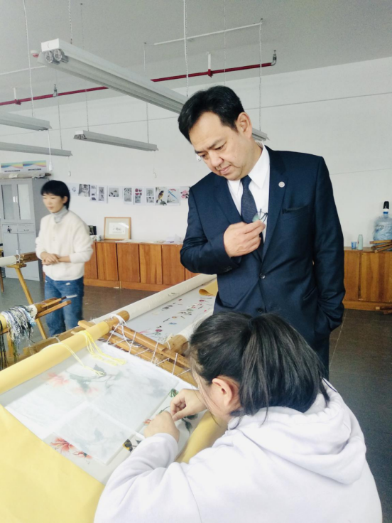 会后,倪政立一行参观了湘绣艺术学院,手工艺术学院,学生活动、生活场地,他希望两校能够不断扩大交流规模,丰富交流交往形式、搭建中马友好合作平台。