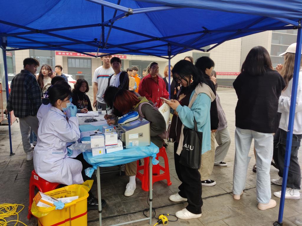 师生献血登记现场