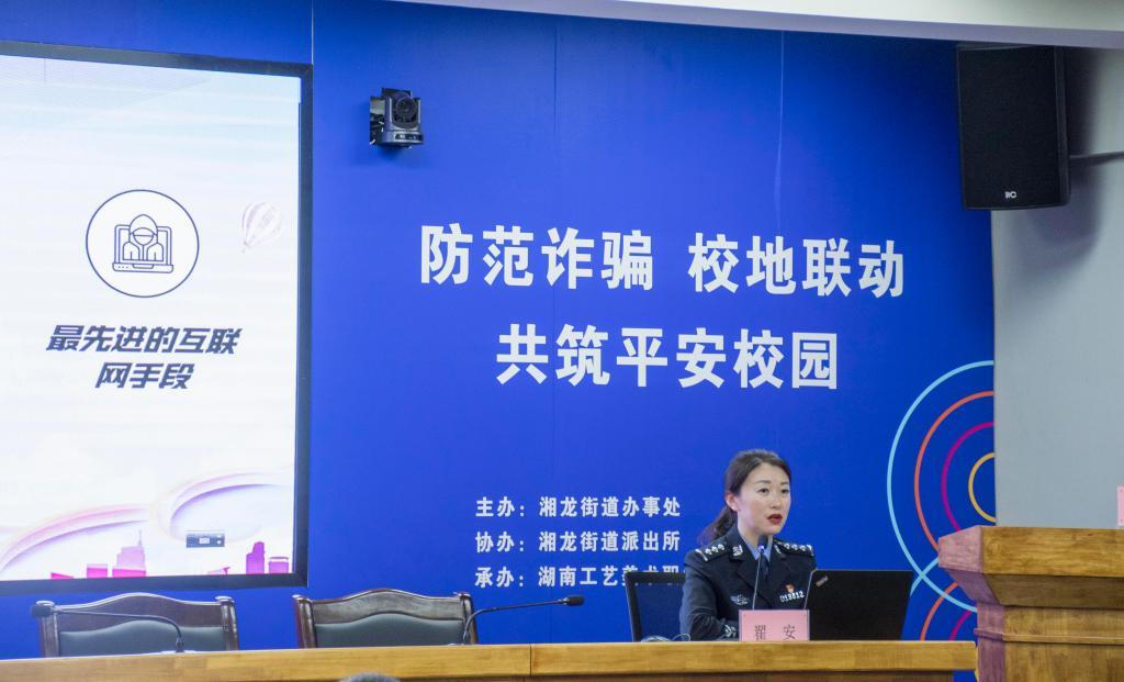 湘龙街道办事处、湘龙派出所联合辖区内五所高校共同开展的“防范诈骗 校地联动 共筑平安校园”专题讲座在我校长沙基地举办
