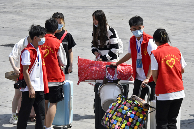 早上7点半,陆续抵达校门口的新同学在现场工作人员和学生志愿者的引导、帮助下,更换口罩,查验“双码”、核酸检测阴性证明、健康登记表等,测量体温后有序进入校内。校内设立了报道点、专业展演区、休息区等区域,各部门工作人员及学生志愿者来来往往,忙忙碌碌。清晰的指引、热情的服务、温暖的话语,让初入校园的新同学处处感受到亲切的关怀。