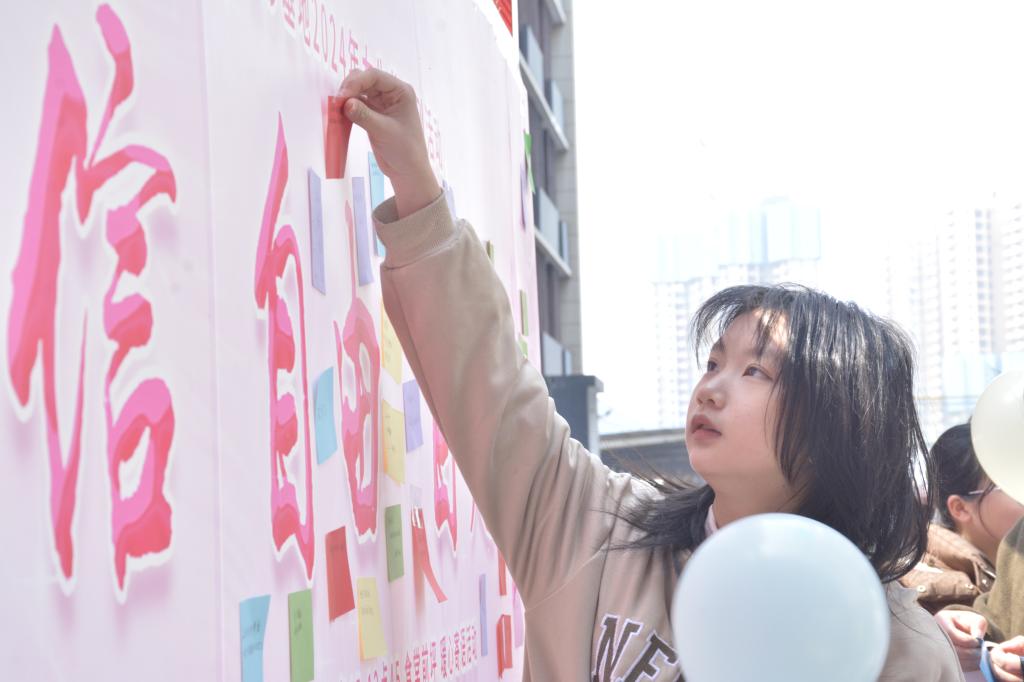 中午12点,“闪光的她 暖心寄语”活动在学校长沙基地食堂前坪举行。现场参与的师生在主题背景板前为女生们书写祝福并打卡留念。晚上7点,“美好映像”观影活动在办公楼三楼会议室开展。基地百余名学生到场观看优秀励志电影《夺冠》,并在观影后分享观影心得。