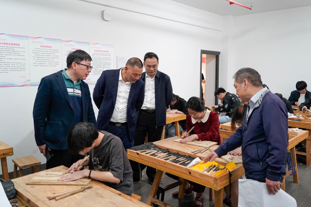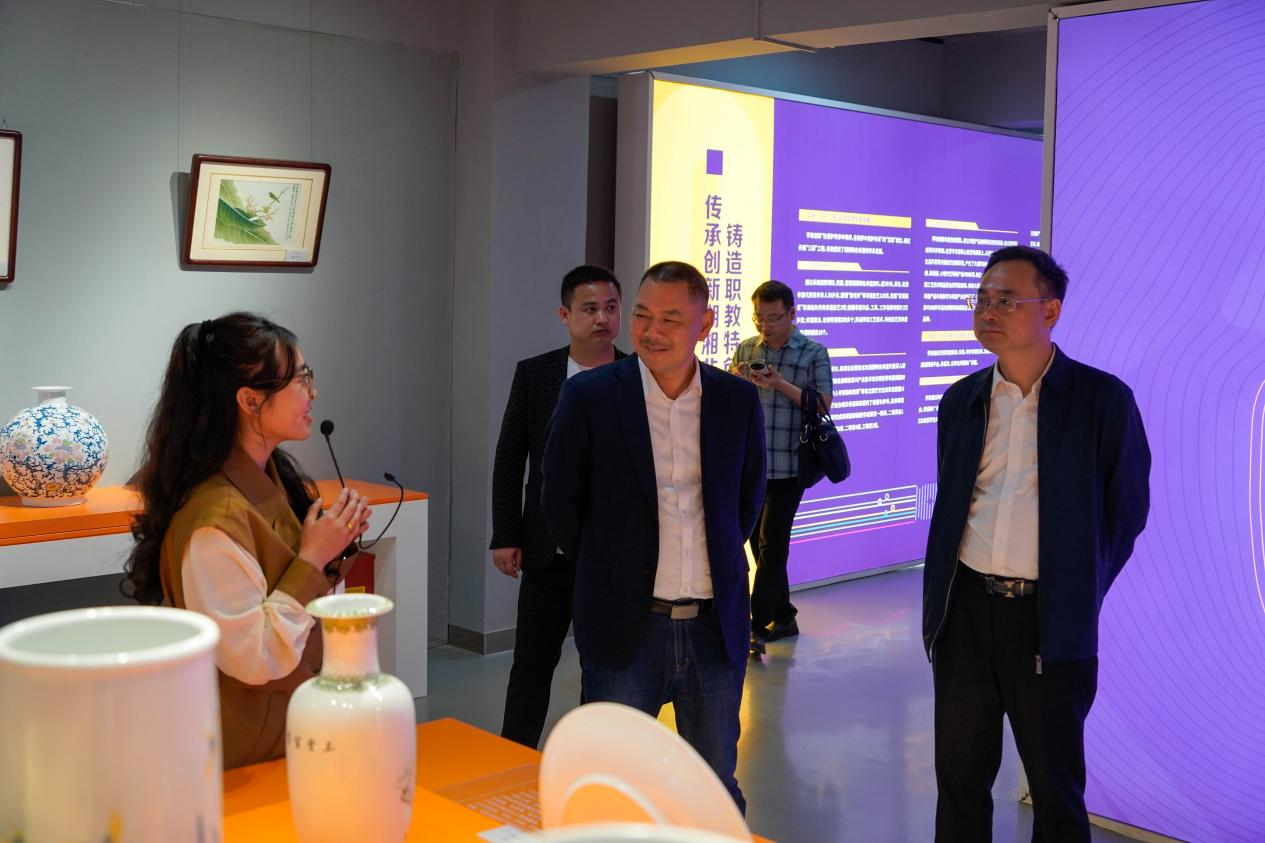 蔡超强一行参观了我校实训基地、非物质文化遗产作品展示馆等多个场馆,探讨了长沙基地运行模式、学生管理、产业学院建设等方面经验,并表示两校以后要加强交流,相互学习,互通有无,促进双方共同发展。