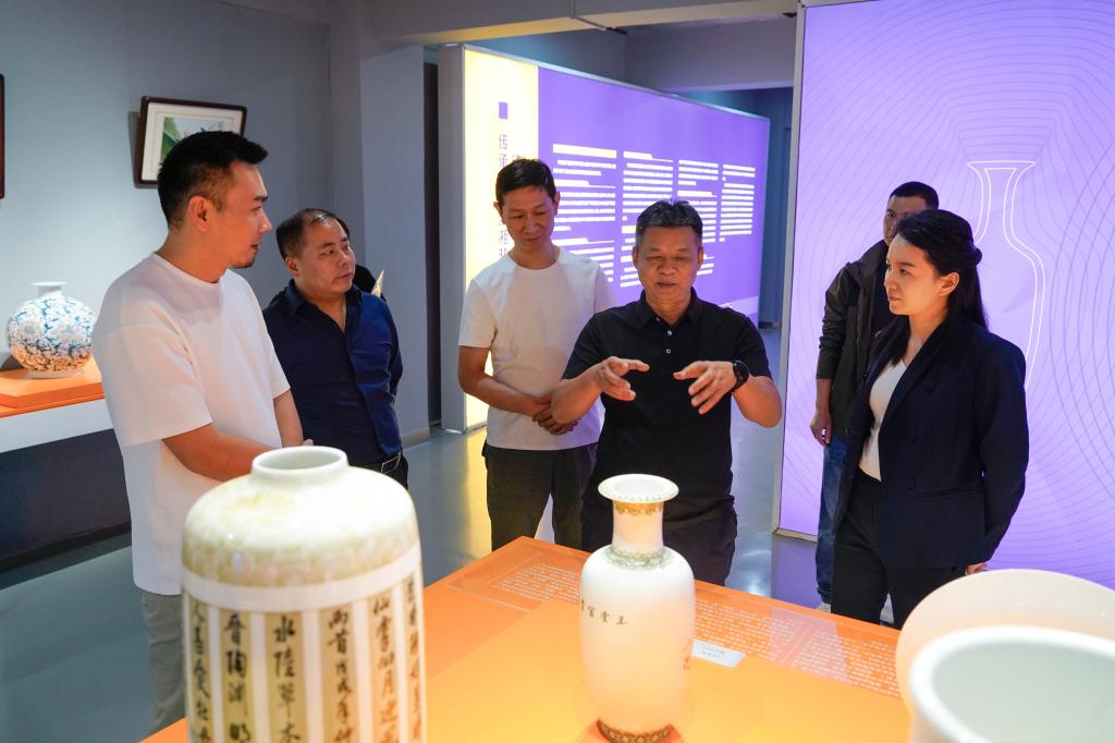 戴正林一行参观了长沙基地各展厅、大师工作室,详细了解园区建设、非遗文化传承、文创产品开发等情况。参观过程中,他们对场馆建设、展厅作品以及浓厚的非遗文化氛围给予高度评价。