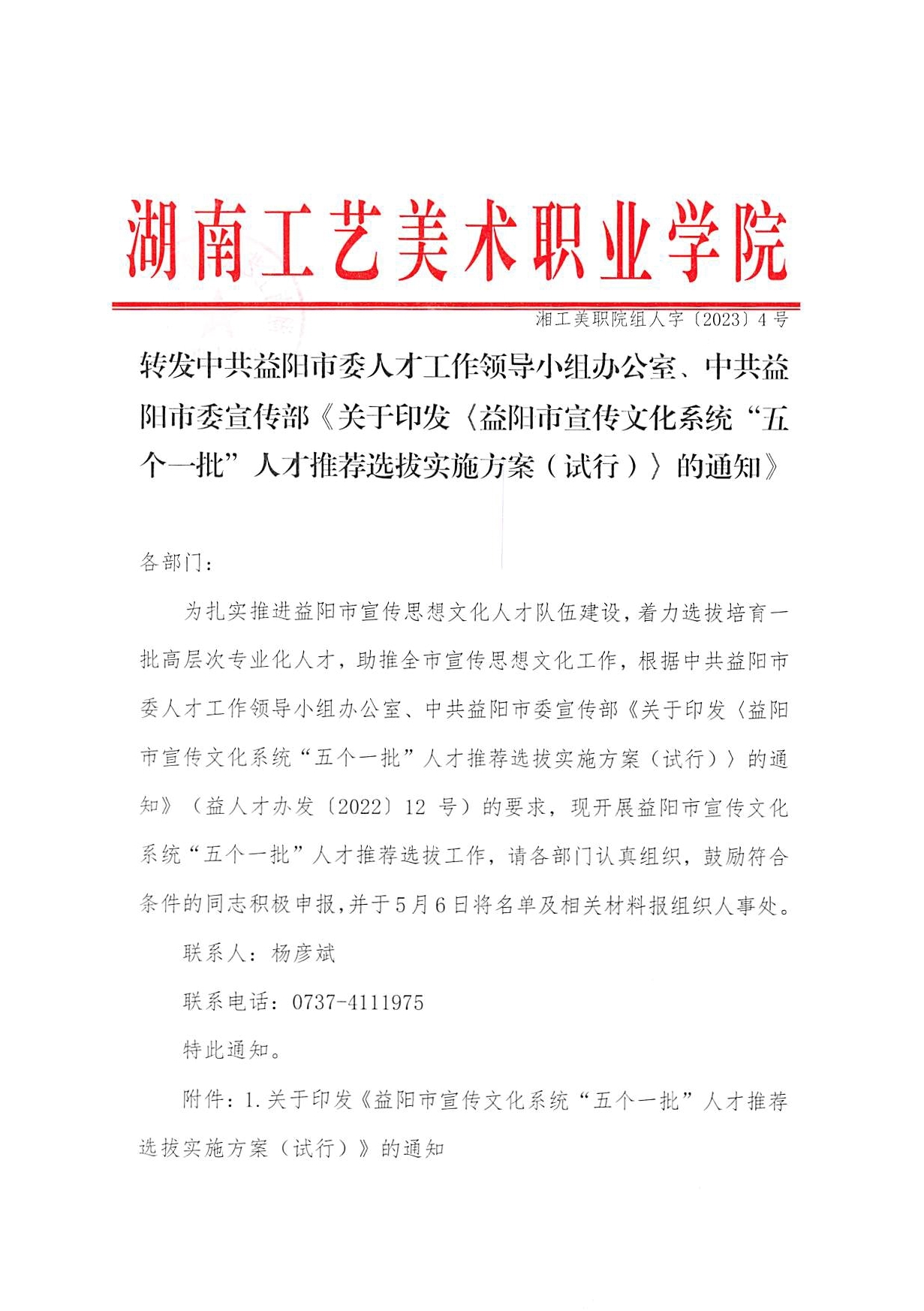 益人才办发〔2022〕12号+关于印发《益阳市宣传文化系统“五个一批”人才推荐选拔实施方案(试行)》的通知.pdf
