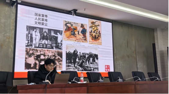 谢志杰围绕伟大建党精神的形成条件、基本内涵、传承弘扬等三个方面进行讲授。他结合党的二十大报告中关于“伟大建党精神”重要论述以及革命先辈们的光荣事迹阐述了伟大建党精神的形成与内涵,深刻阐释了新时代的共产党人继承和弘扬伟大建党精神的路径与方法。