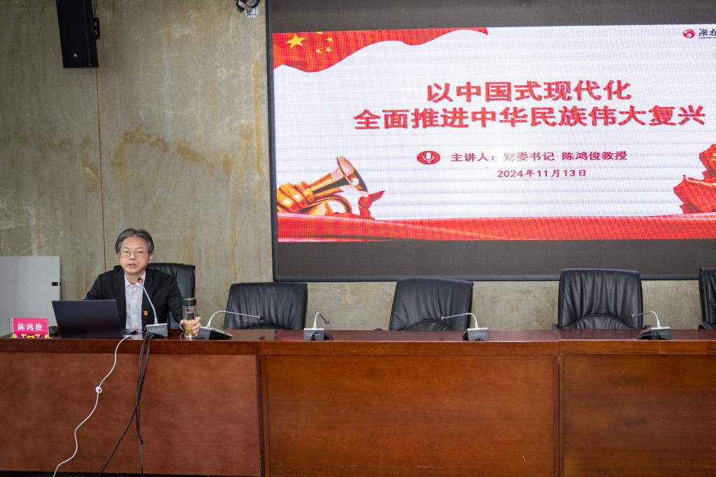 学校党委书记、党校校长陈鸿俊出席培训班开班仪式并作了题为《以中国式现代化全面推进中华民族伟大复兴》的专题授课。他紧密结合当前国内外错综复杂的形势,对中国式现代化进行了全面而深入的剖析,其授课内容不仅涵盖了中国式现代化的特点、本质要求、重大原则,还深入探讨了其历史逻辑、实践逻辑以及理论逻辑。他深情寄语学员,要将个人梦想融入祖国、民族、时代的伟大事业中,在实现中华民族伟大复兴的征程中担当历史使命,展现责任担当。他的授课内容丰富、思想深刻,不仅为学员提供了宝贵的理论滋养,更激发了大家的奋斗热情,坚定了大家的理想信念,为学员指明了前进的方向。